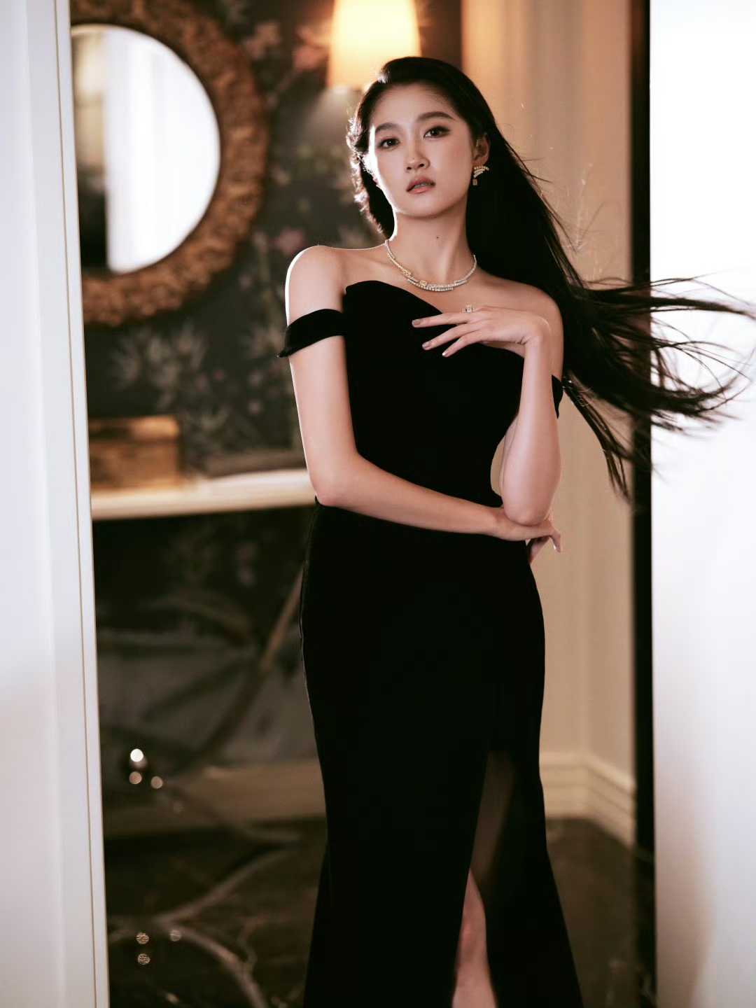 关晓彤穿露肩礼裙美腿吸睛!眼神冷冽